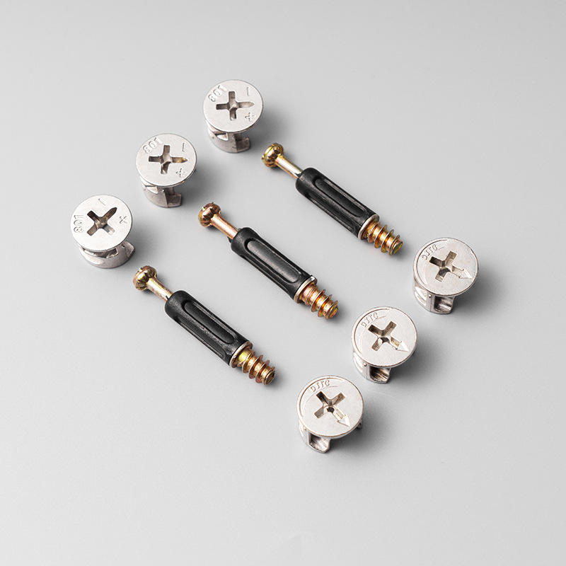 Mini système de fixation de meubles 3 en 1: came excentrique, vis, contre-écrou et boulon