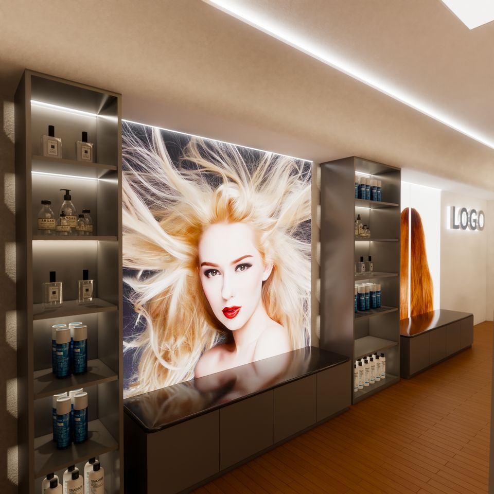 Fabricant de meubles Vitrine de shampoing en verre Porte-perruque Présentoir en bois Vitrine pour salon de coiffure Design