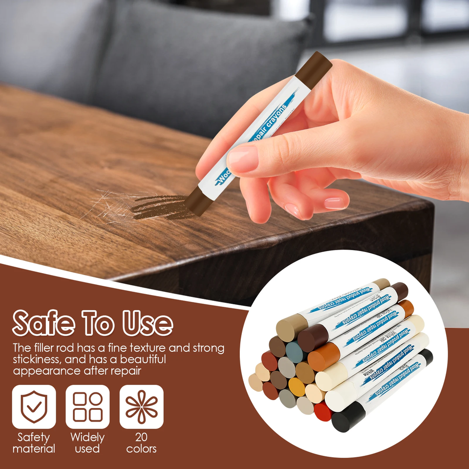 Bâtons de cire pour la réparation de meubles, kit de réparation du bois multicolores, outil de retouche pour les rayures, les bosses, les tables, les portes, l'usage domestique et au bureau
