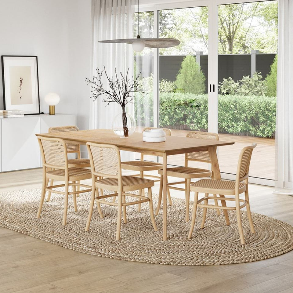 Furniture Set Modern Dining Table Set Teak Wood With 6 Chairs Combination Rattan - Fatia