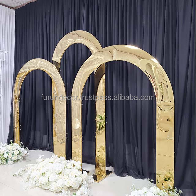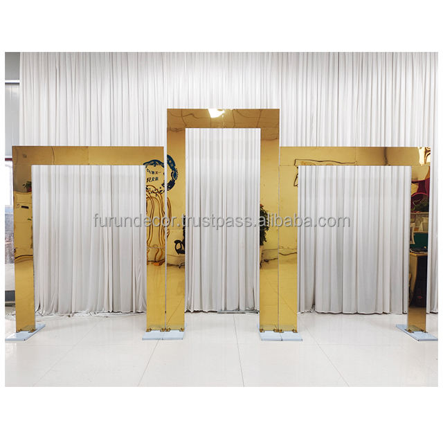 Furun usine personnalisé or miroir fleur cadre en acier inoxydable mariage arc toile de fond support fête événement décoration