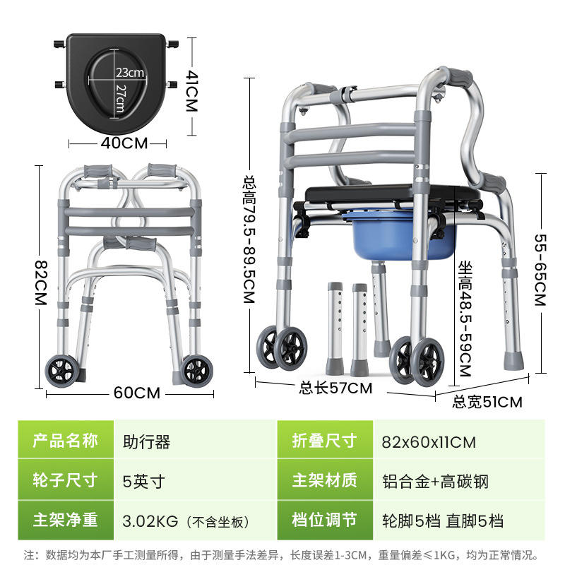 Déambulateur Fushide avec siège, roues de 5 pouces, en alliage d'aluminium, pliable, pour personnes âgées, aide à la mobilité