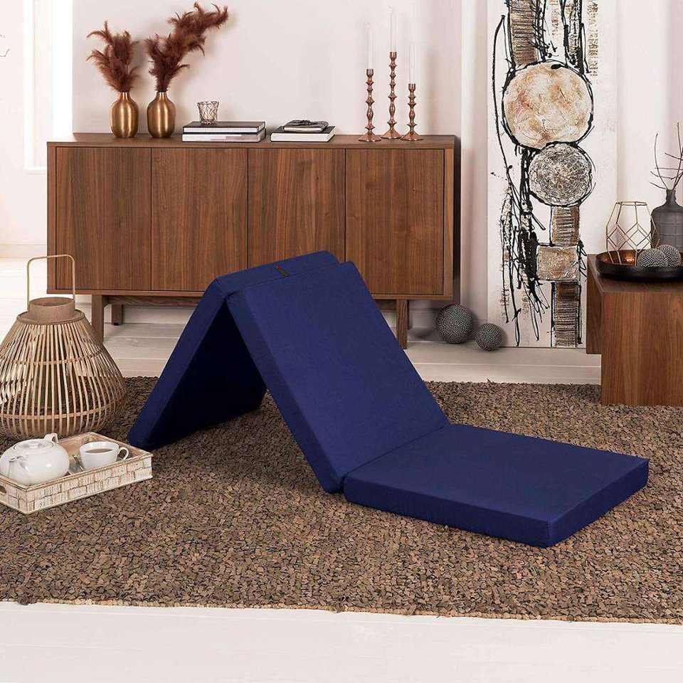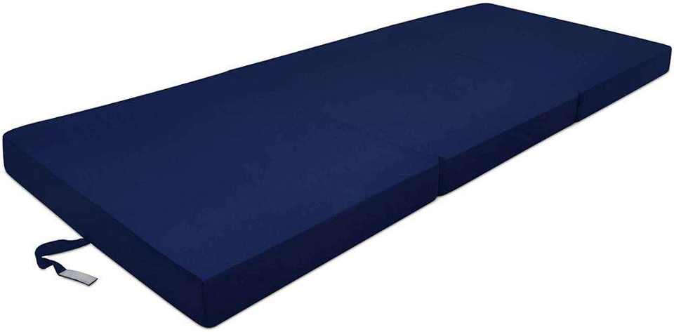 Futon 60 x 190 cm, grand lit pliant portable de voyage, bleu foncé, économise de l'espace