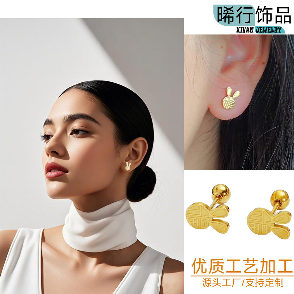Les vis de goujon d'oreille de lapin Futu ne se décolorent pas en couleur Peut être porté pendant le bain et le sommeil Pas besoin d'enlever le goujon de perçage