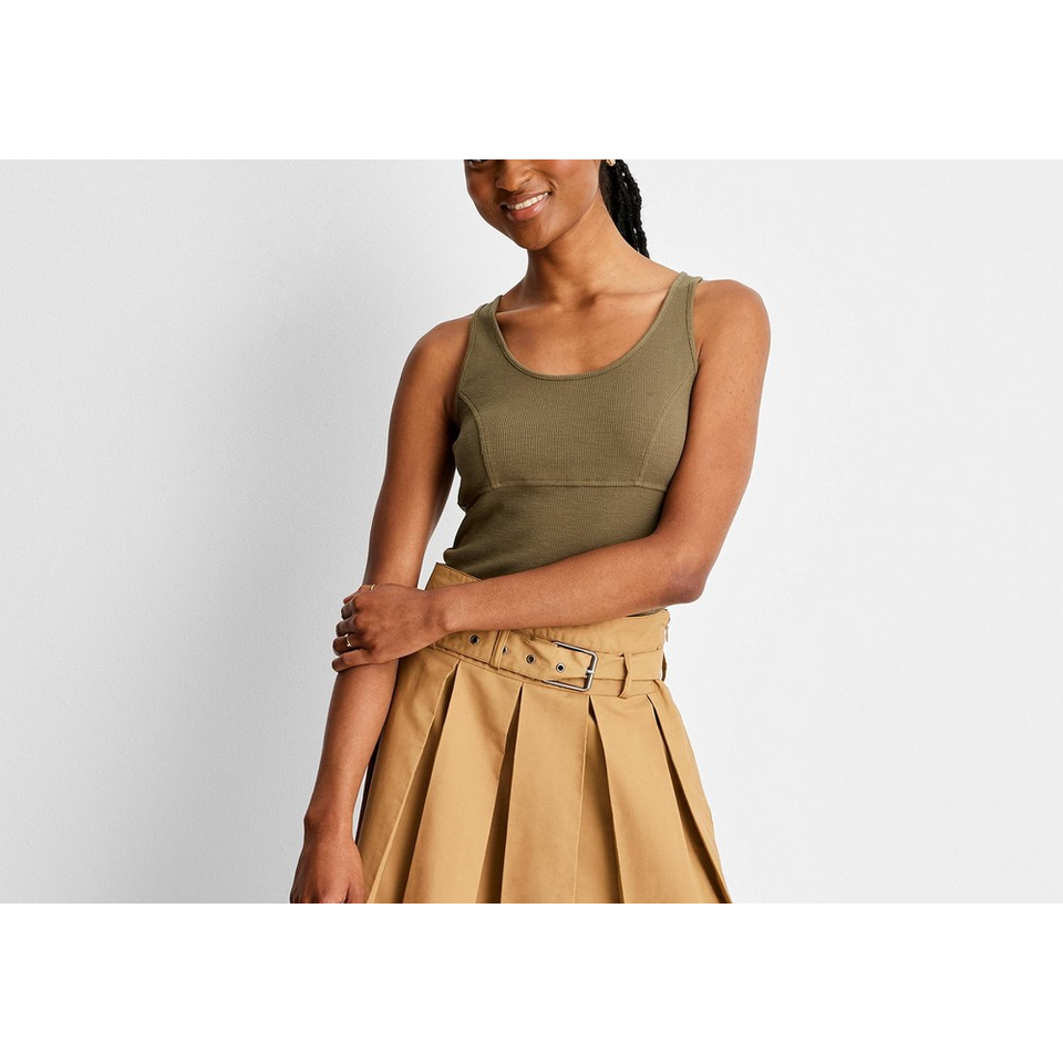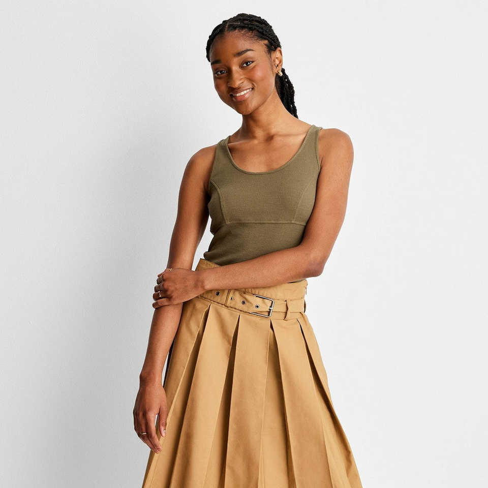 Haut court côtelé Future Collective pour femme, taille unique, vert olive foncé, taille M par Reese Blutstein, tissu tricoté respirant