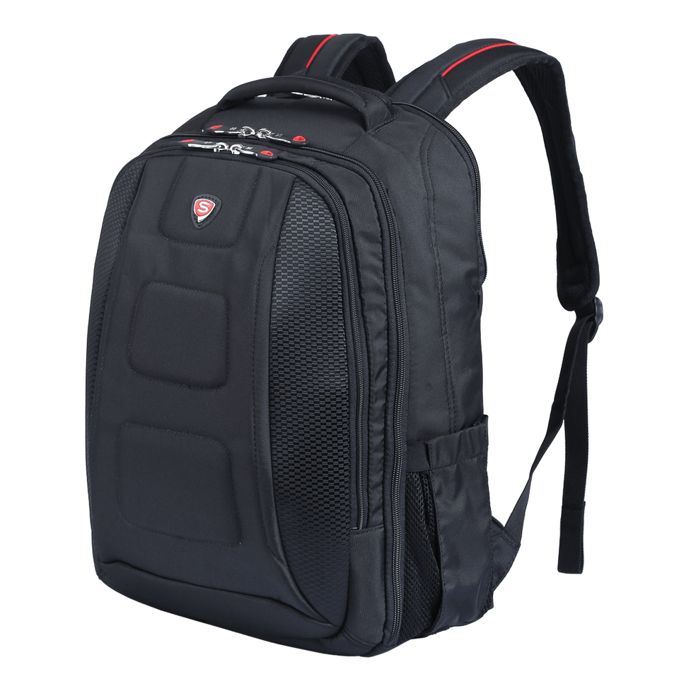 Sac à dos pour ordinateur portable futuriste à coque rigide, résistant à l'eau, avec un design géométrique et un organisateur technique multi-couches