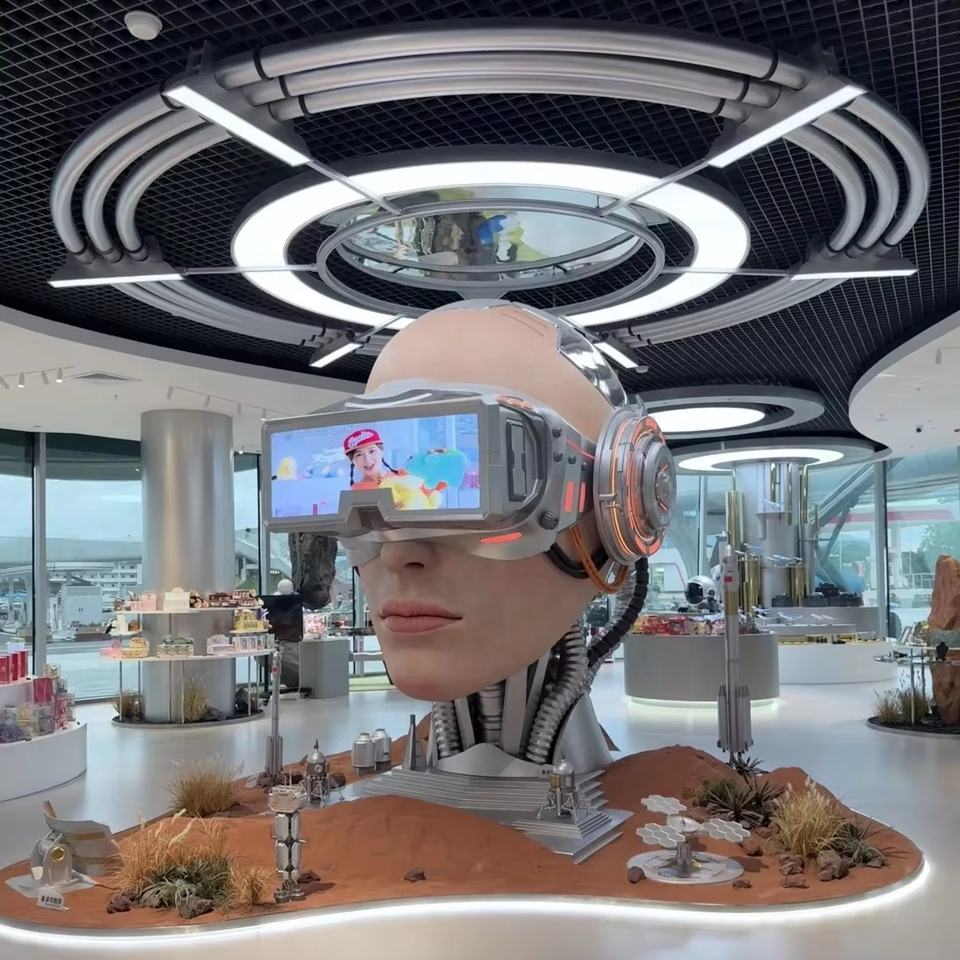 Sculpture de tête mécanique interactive futuriste VR Installation d'art de haute technologie pour la décoration commerciale et l'attraction des foules