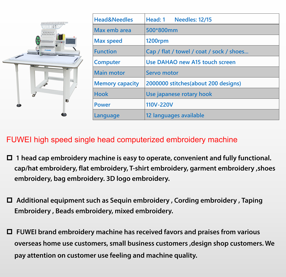 Machine à broder à tête unique Fuwei, grandes images Lun pour uniformes scolaires, prix d'usine