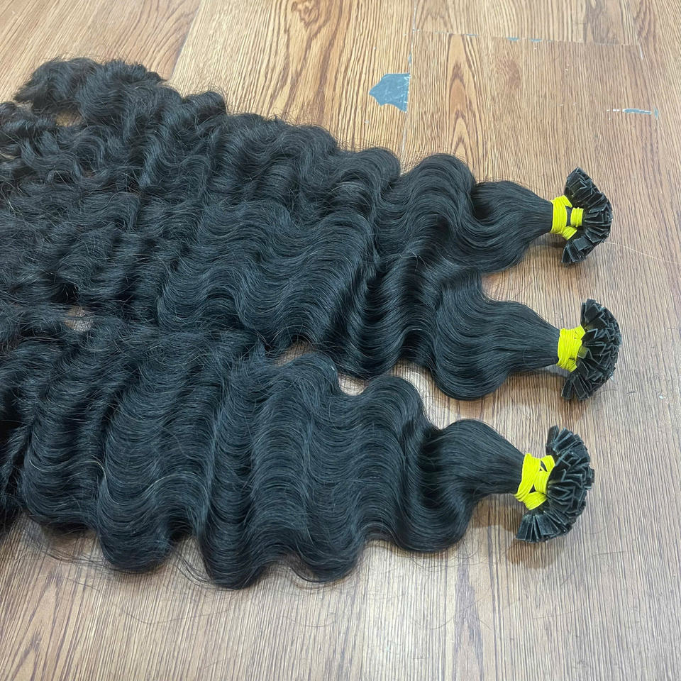Extensions de cheveux bouclés Fuzz K-Tips, noir naturel, 100% cheveux humains du Vietnam, 8-34 pouces, fournisseur de premier plan