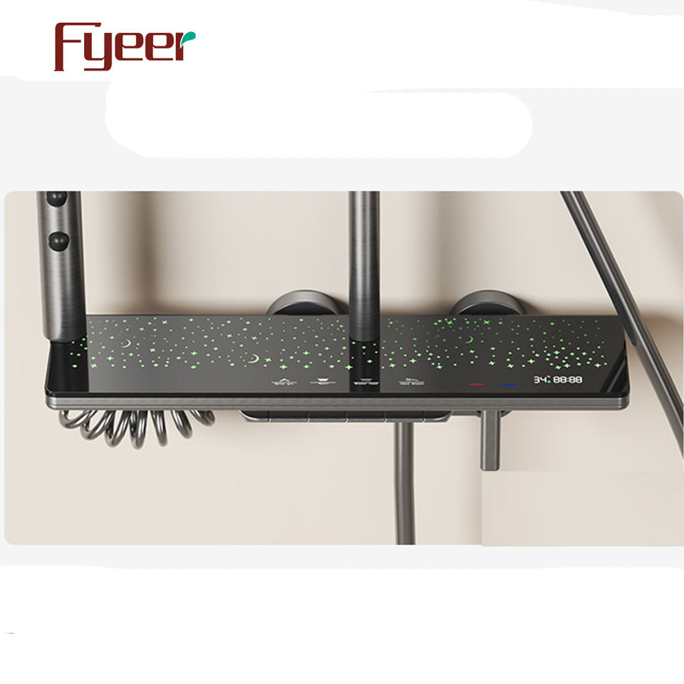 Fyeer Ensemble de douche numérique gris avec ciel étoilé