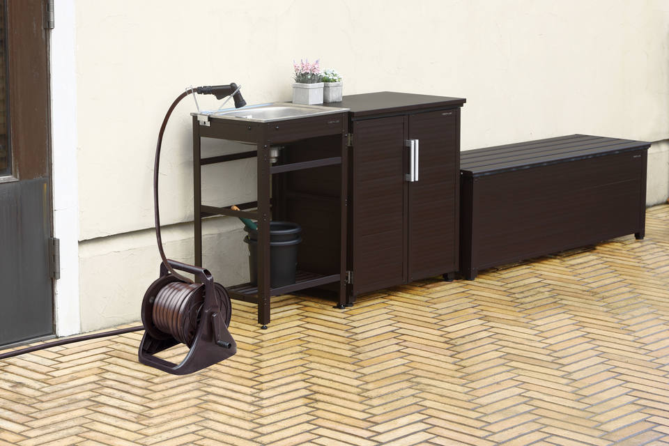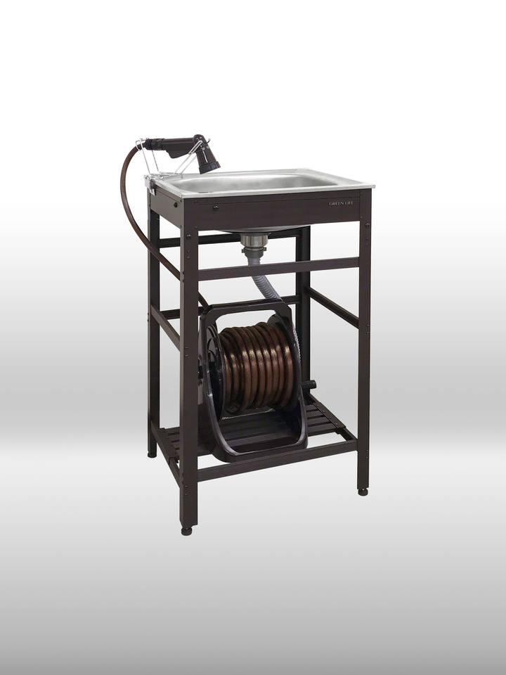 Enrouleur de tuyau en plastique brun clair série G-Aqua facile à assembler Outils de jardinage Buse à motifs d'eau multiples Pulvérisateurs de produits