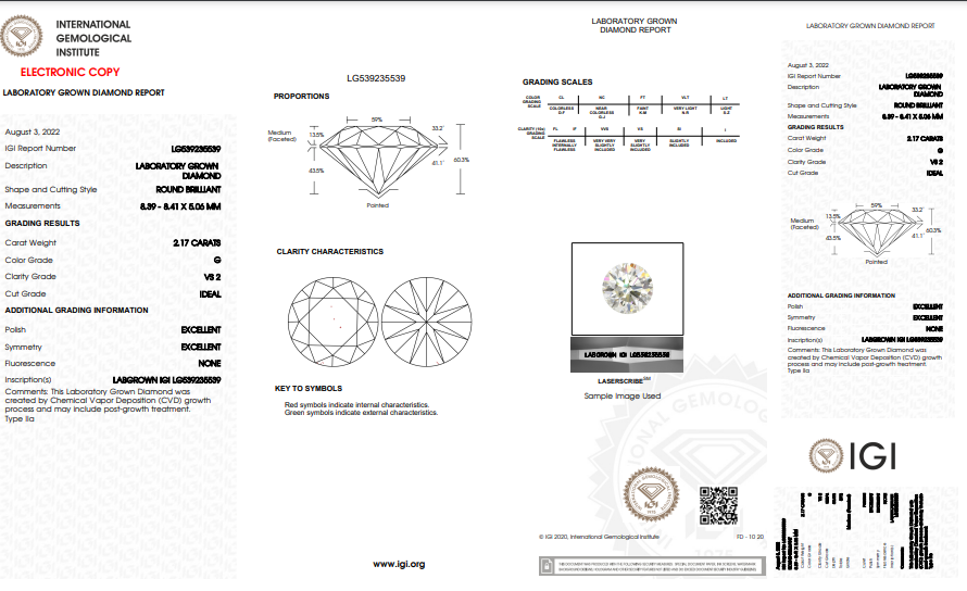 G Color VS2, taille de clarté 2.17Ct diamant poli de laboratoire de forme ronde HPHT-CVD bijoux en diamant en vrac