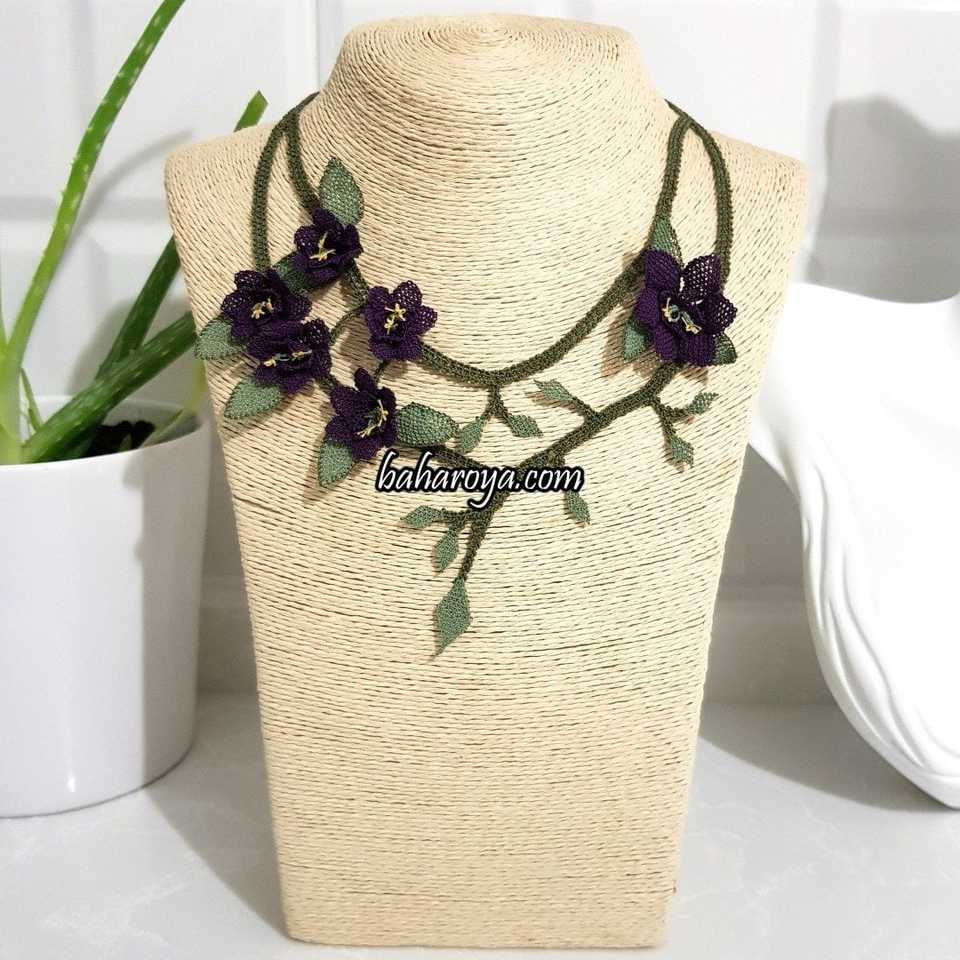 Gökçe Kolye No. 2 (Tuğra) Mor Collier à la mode élégant avec İğne Oyası