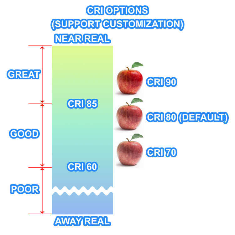 Color Rendering Index(Ra):70 80 90 OPTs