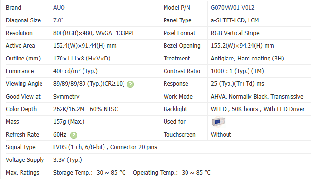 Panel Type:a-Si TFT-LCD