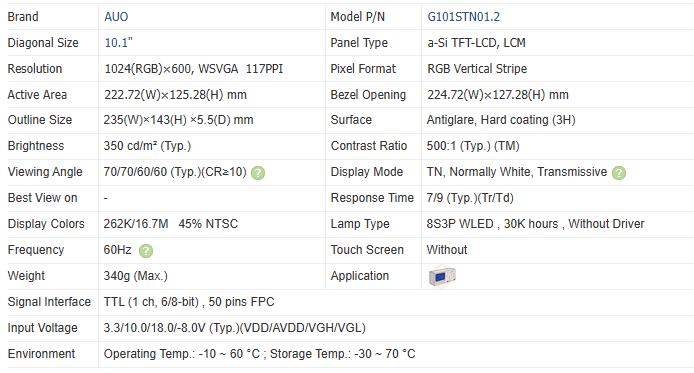 10.1inchDisplay Size
