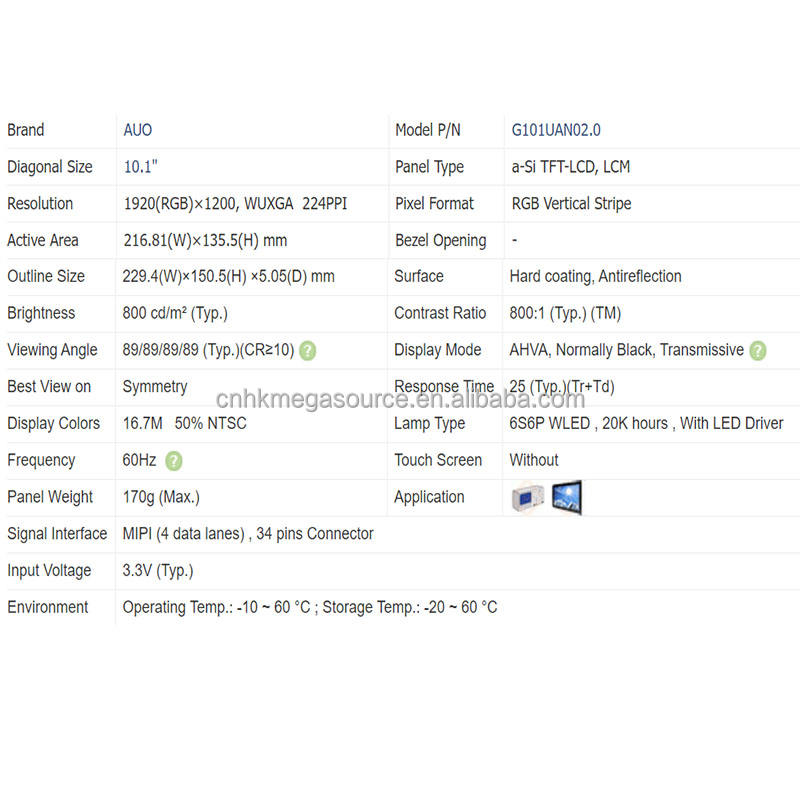 Model Number:G101UAN02.0