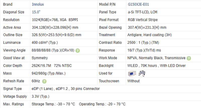 Communication Interface:eDP (1 Lane) , eDP1.2 , 30 pins Connector