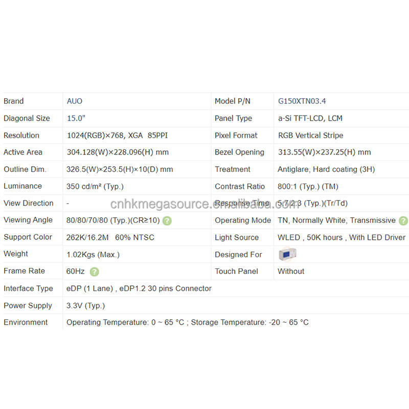 Model:G150XTN03.4