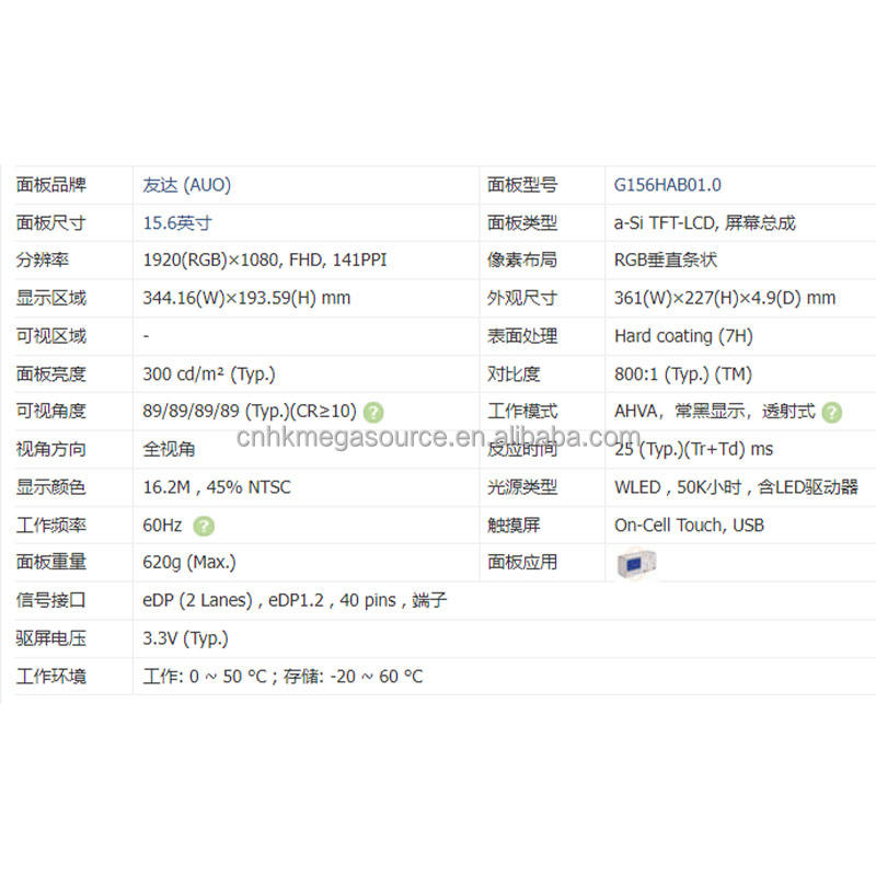 Numéro de modèle:Liste des pièces: G156HAB01.0