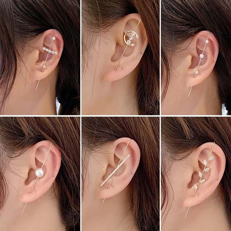G1609 aiguille d'enroulement en Zircon géométrique, clou d'oreille Diagonal, Crochet d'ongle, Crochet Long, Cartilage, Piercing, Crochet d'enveloppe, boucle d'oreille