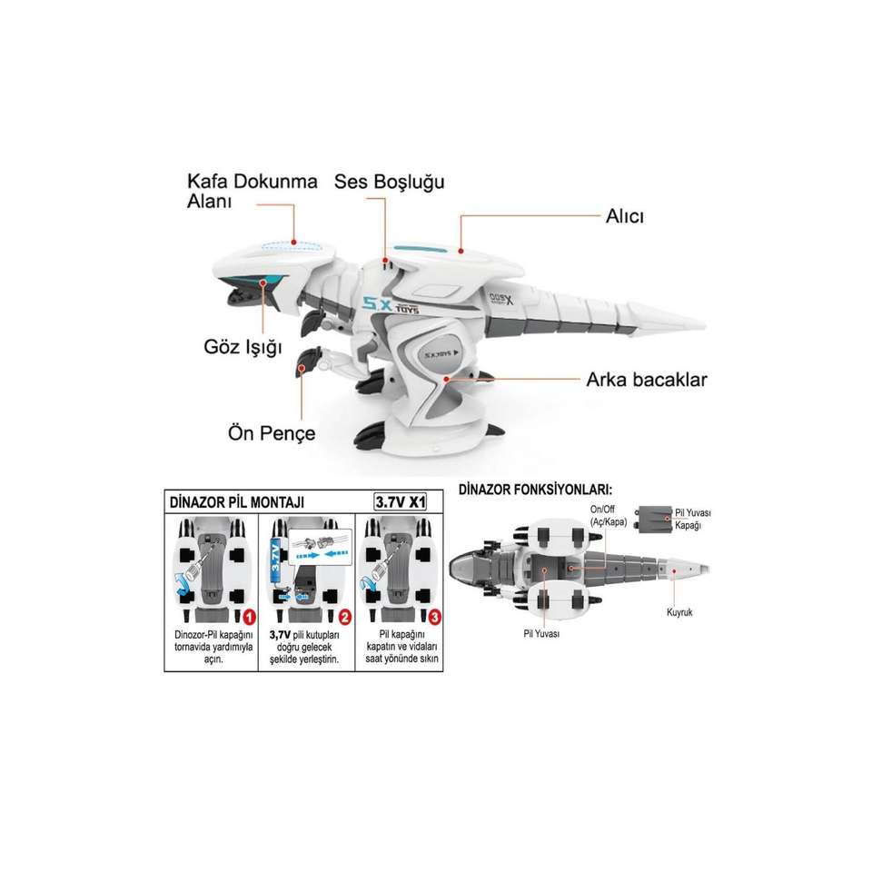 Robot dinosaure interactif télécommandé G17 rechargeable avec lumières et musique, fabriqué en Turquie