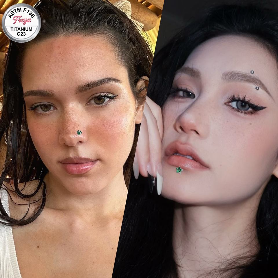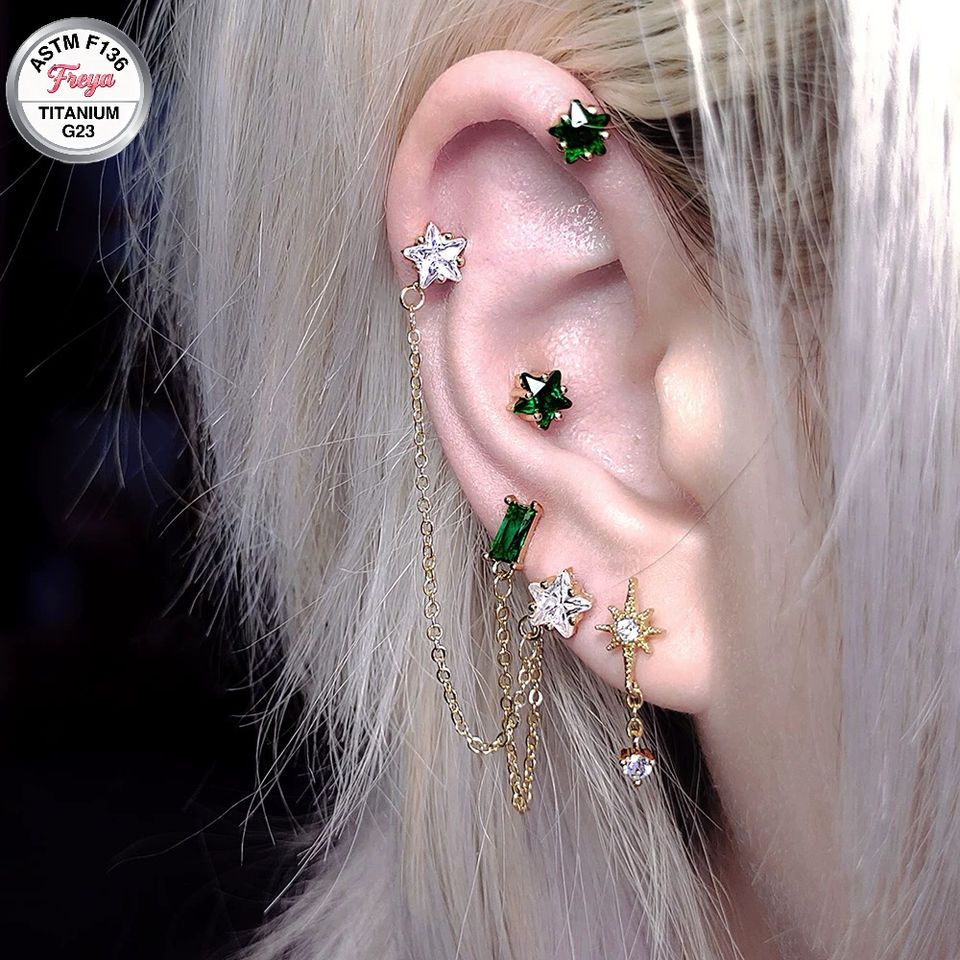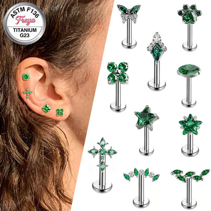 Piercing de corps en Titane G23 ASTM-F136 avec Zircon Vert et Émeraude, à filetage interne, pour cartilage d'oreille, labret et lèvre, vente en gros