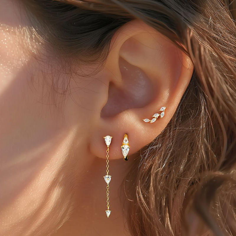 Boucle d'oreille longue G23 à filetage interne pour cartilage, piercing hélix, bijoux de corps en alliage de titane, zircon, chaîne à pampilles, plaqué titane