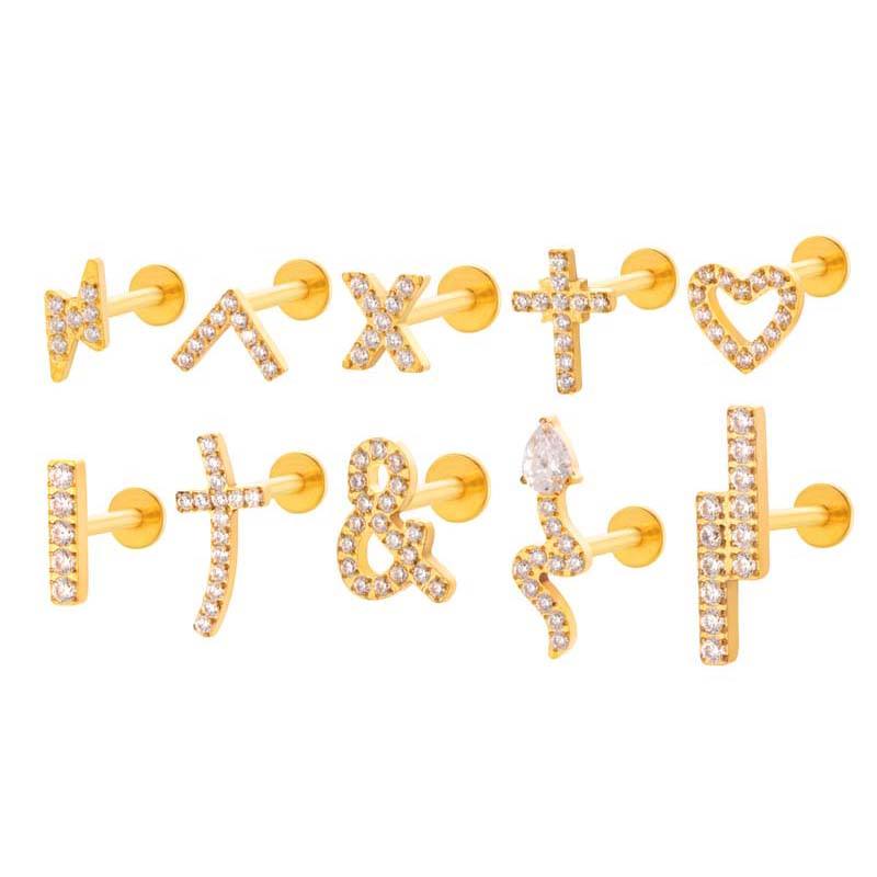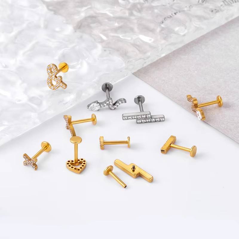 Boucles d'oreilles en titane G23 ASTM F136, bijoux en titane, piercing, cœur en or, serpent, croix, dos plat, cartilage, labret, anneau de lèvre