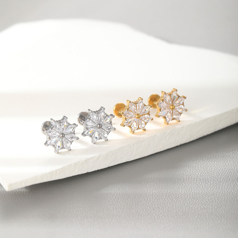 G23 Titanium PVD Filetage interne Fleur de neige Clear CZ Lip Monroe Piercing Ear Cartilage Helix Studs Earrings