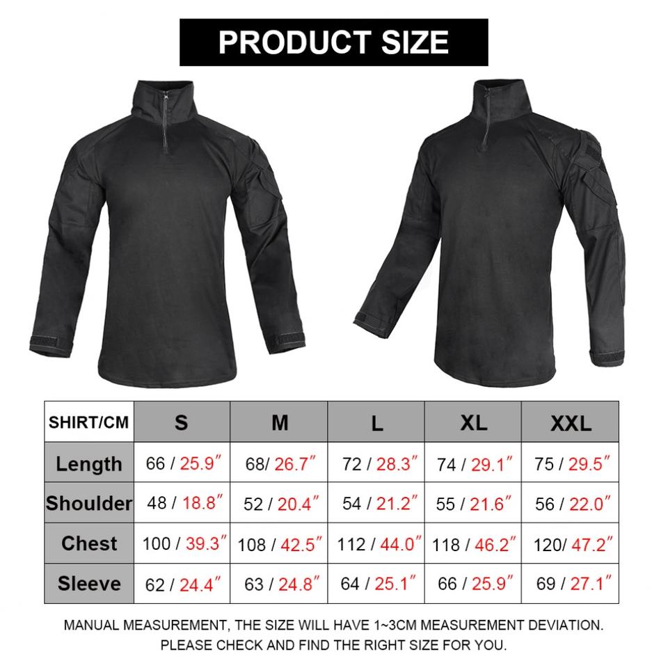 Package included:Tactical Shirt with Elbow Pads