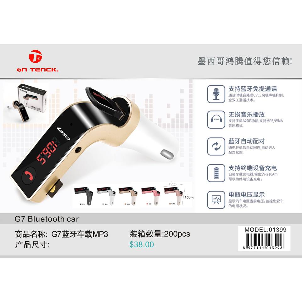 Lecteur MP3 Bluetooth pour voiture On Teck G7, transmetteur FM sans fil pour allume-cigare, portée 15 m, musique portable, appels