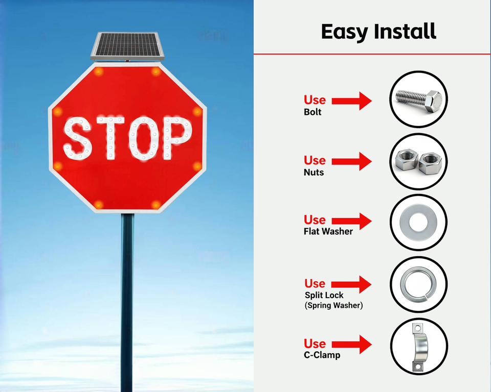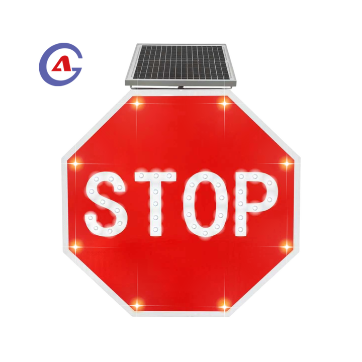 GA Feux de circulation solaires en aluminium étanches à haute luminosité Panneau d'arrêt clignotant à LED pour la sécurité routière Radar clignotant pour route