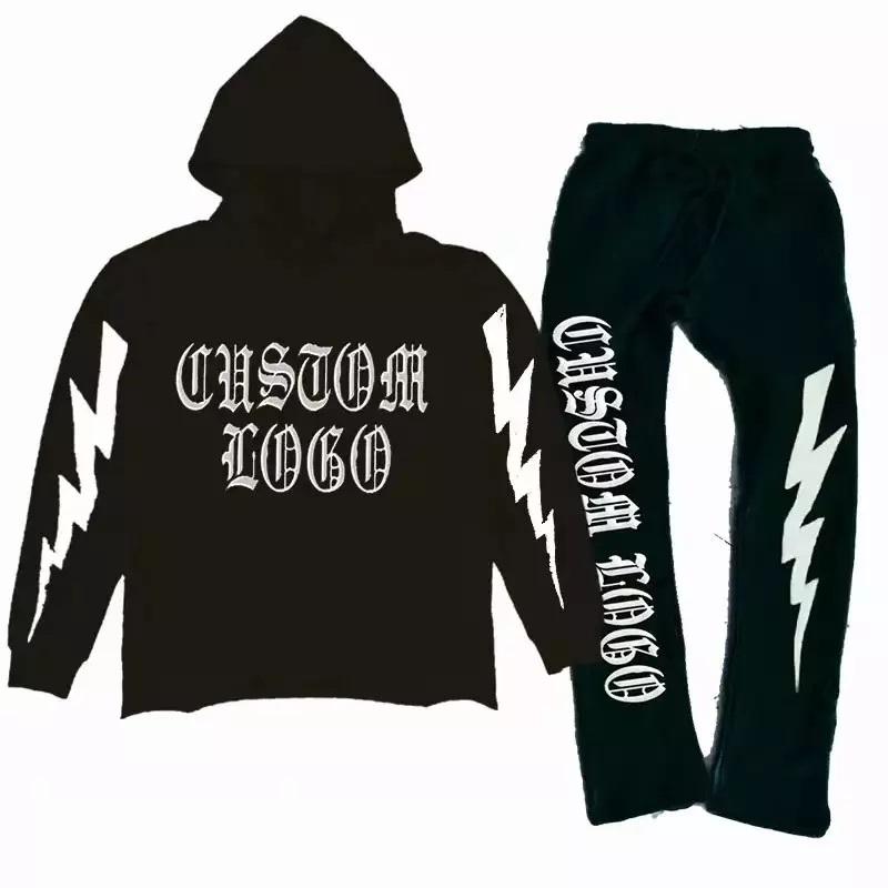 GAF Custom Logo Casual Vintage Oversize Hooded Blank Unisex Plain Cotton Hoodies Mens OEM Tracksuit Sweatpants Sweatshirts Set