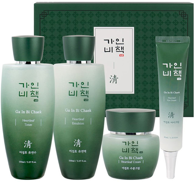 GAINBICHAEK Coffret de soins du visage coréen avec acide hyaluronique et extrait de feuille de cœur Coffret cadeau de 4 pièces pour tous les types de peau