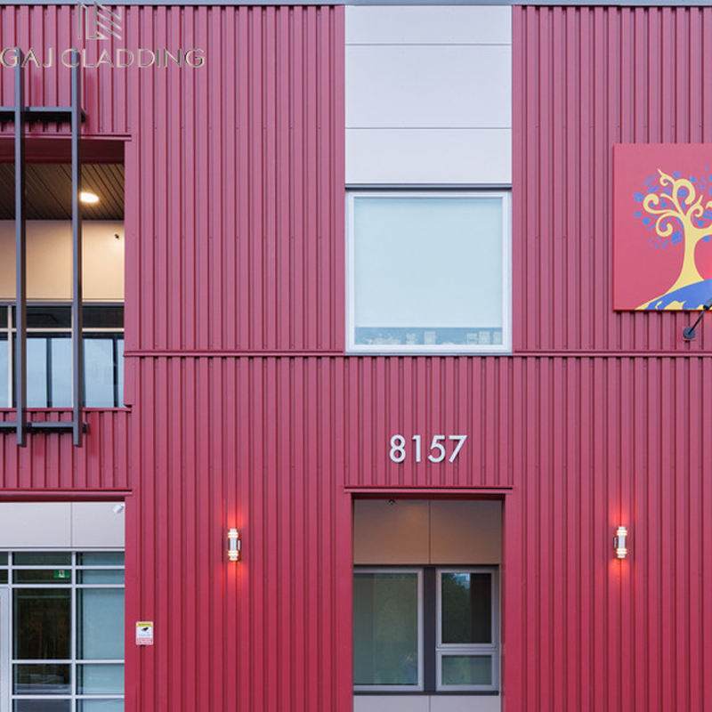 Revêtement mural vertical léger et moderne GAJ, panneaux muraux extérieurs en aluminium rainuré ignifuge de 0,8 mm, revêtement PVDF
