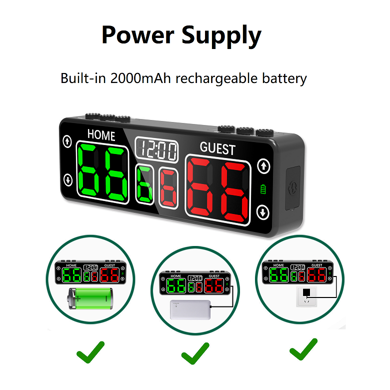 Tableau de score numérique GANXIN V30A_10, tactile, rechargeable, alimenté par batterie, minuterie, écran tactile LED magnétique, portable, pour le pointage des scores de jeux