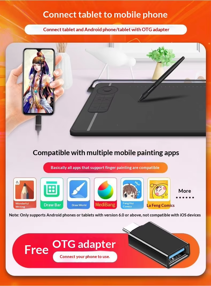 Tablette GAOMAN M7 pour téléphone portable et ordinateur - Tableau de dessin avec prise en charge des cours en ligne Fabriqué en Chine
