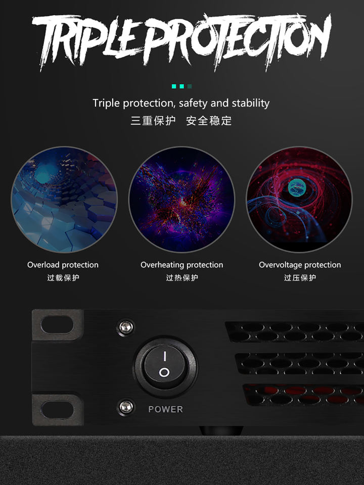 Amplificateur de puissance professionnel GAP-E1200 500Wx2 Amplificateur de classe D pour son en direct, DJ