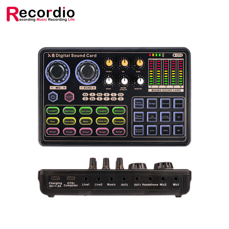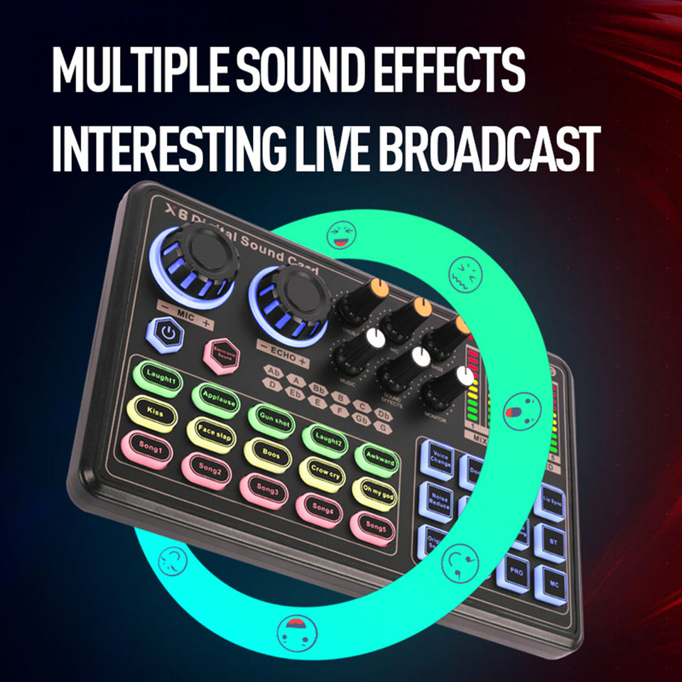 GAX-X6 carte son en direct double téléphone portable ordinateur USB carte son externe réseau K enregistrement de chanson Interface Audio Mini mélangeur
