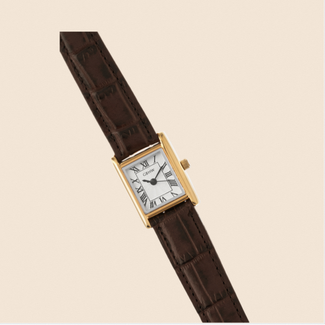 GBHW Square Classic Wristwatch Gold White Brown Luxury Quartz Watch Elegant Analog Timepiece for Women with Leather Strap