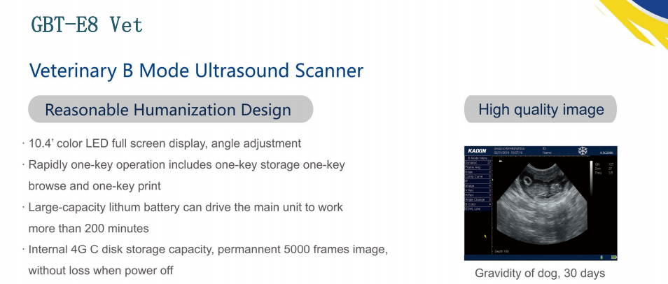 Échographe vétérinaire portable GBT-E8, mode B, pour animaux, appareil d'échographie diagnostique