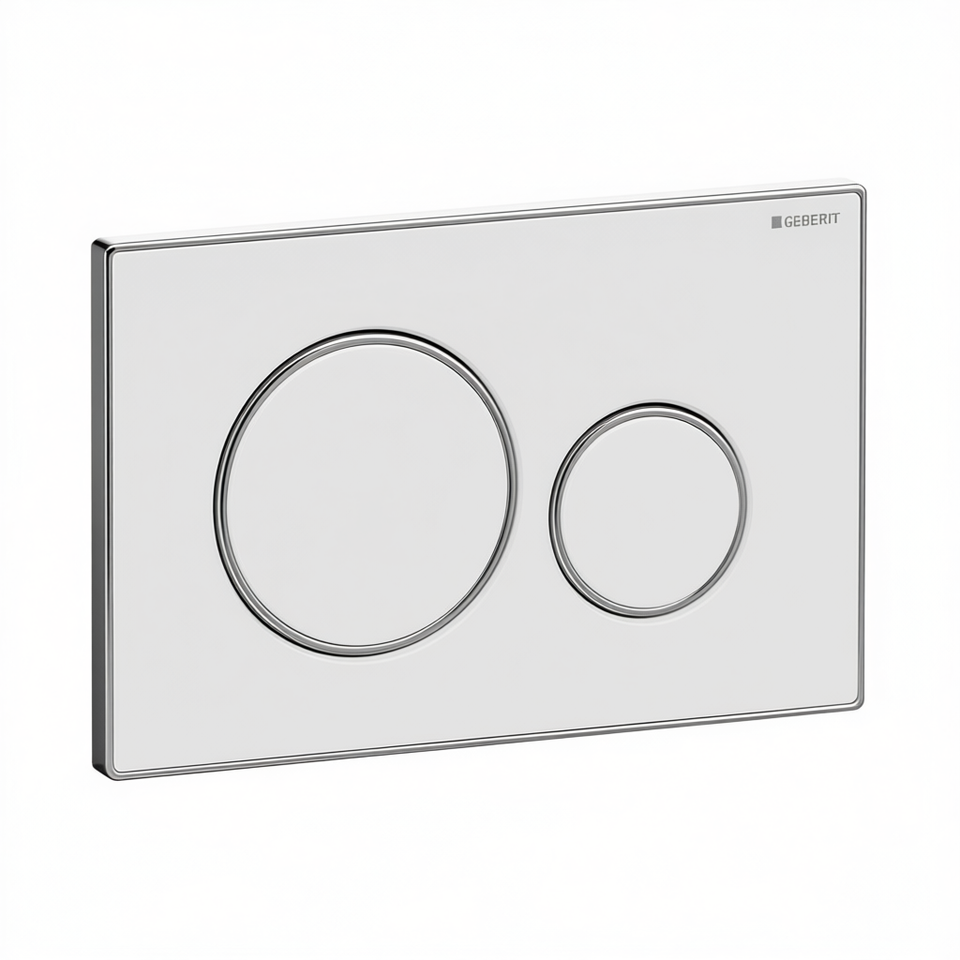 Plaque de commande GEBERIT Sigma 20 à 2 boutons, longueur 24,6 cm, largeur 16,4 cm, bords chromés, boutons de chasse d'eau pour toilettes