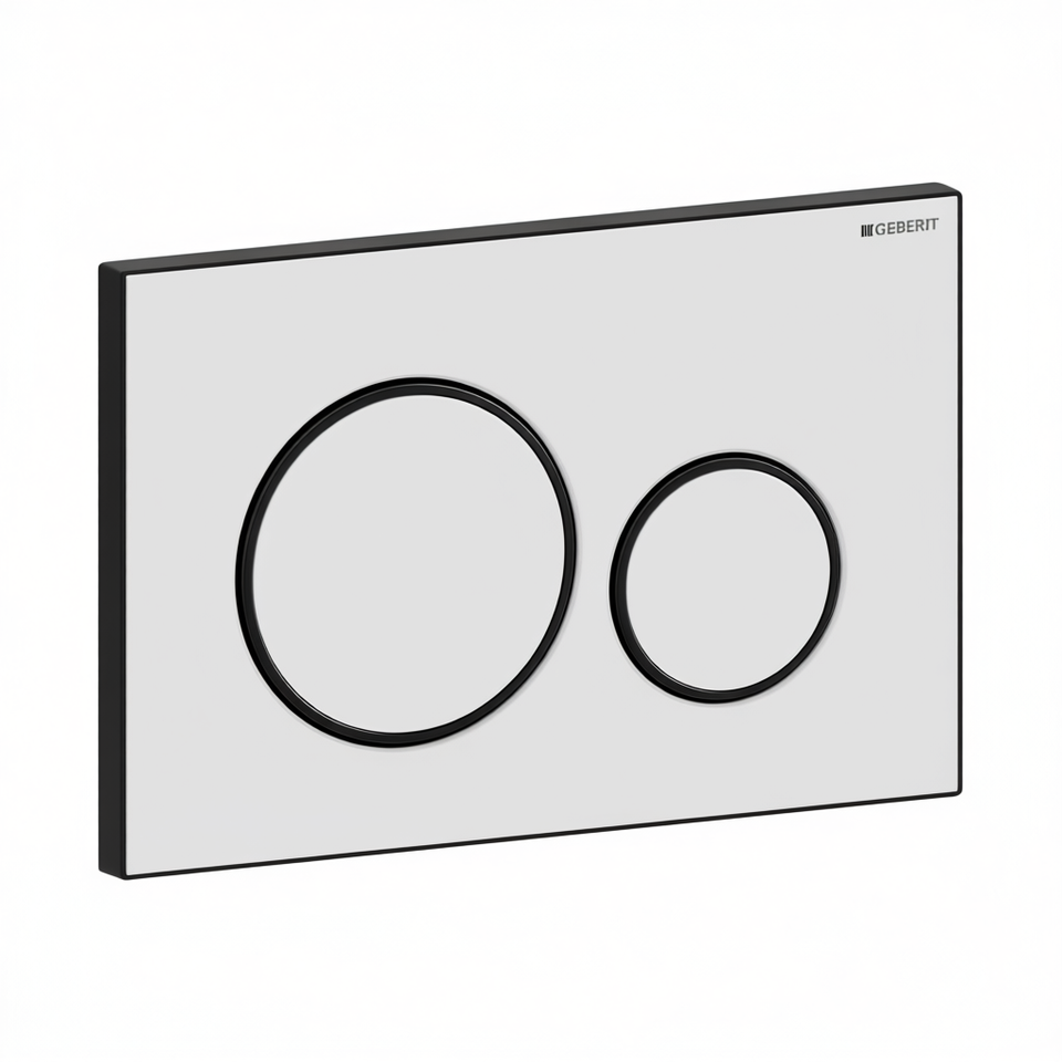 Plaque de commande GEBERIT Sigma 20 à 2 boutons, noir mat avec bords chromés, largeur 17,2 cm, boutons de chasse d'eau pour toilettes