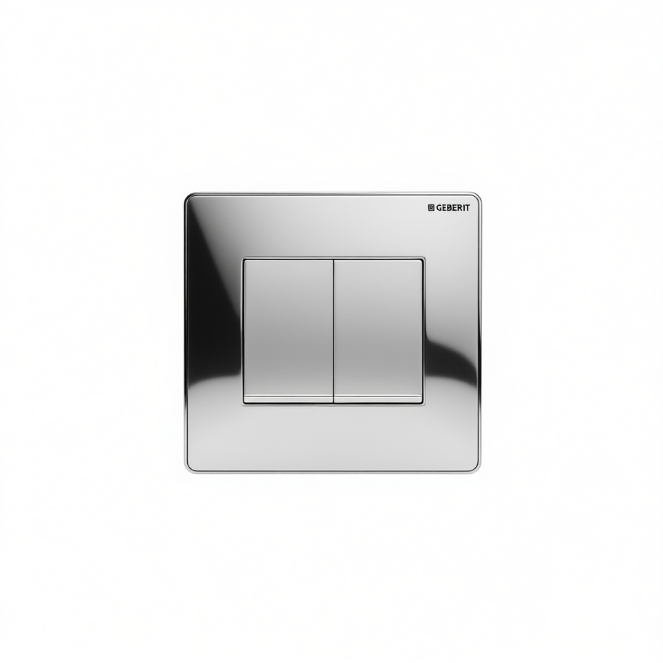 Plaque de commande GEBERIT Sigma 30 à 2 boutons, finition chrome satiné, bord inférieur 29,9 cm, boutons de chasse d'eau pour toilettes