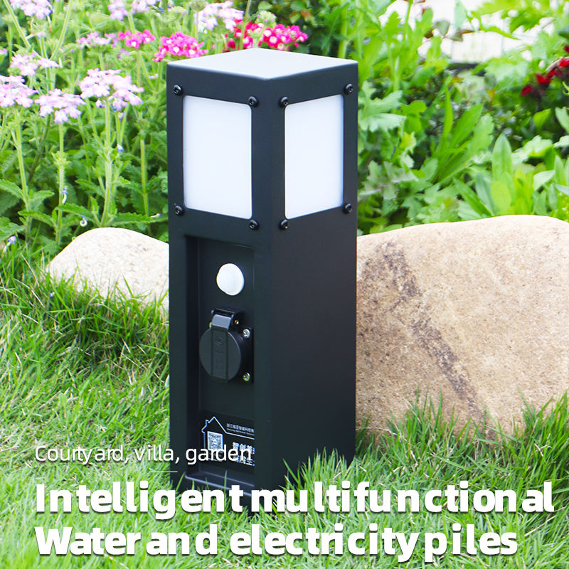 GEEYA Prise électrique extérieure étanche avec éclairage intégré et contrôle par application Tuya, pilier de prise intelligente pour le sol du jardin