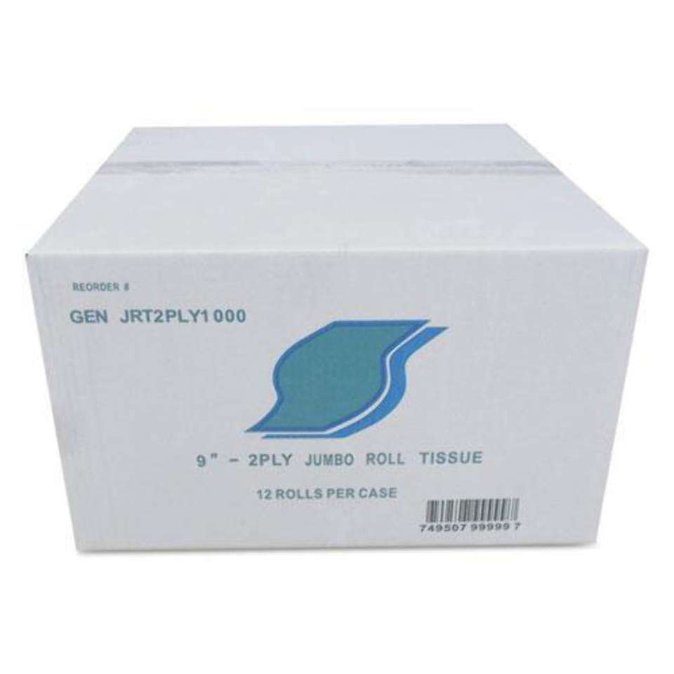 Papier toilette géant GEN JRT2PLY1000, 2 plis, doux et résistant, en bambou, blanc avec gaufrage à pois, diamètre 9 pouces (boîte de 12)