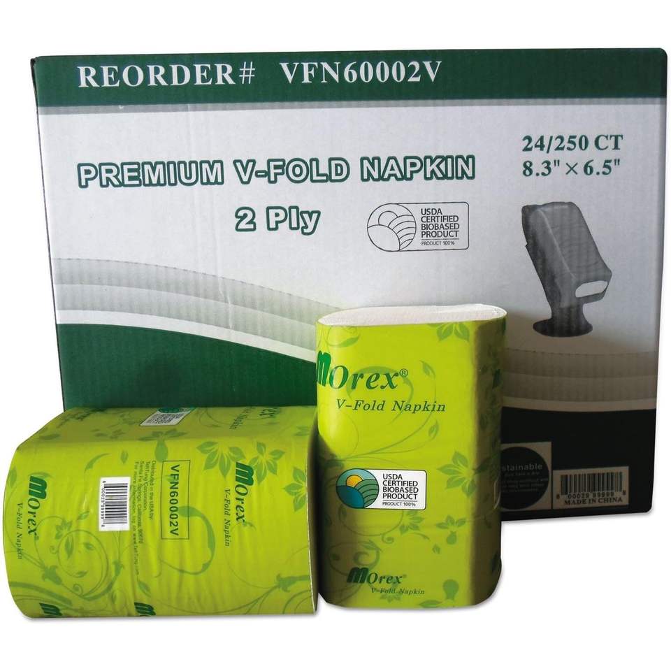 GEN VFN60002V Distributeur de serviettes pliantes en V Premium 6.5x8.3 en pulpe de canne à sucre 250/unité 24 unités/boîte Serviettes en papier