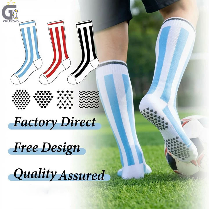 Chaussettes de football GENKE personnalisées à rayures verticales, antidérapantes, hauteur genou, fabrication directe, design gratuit