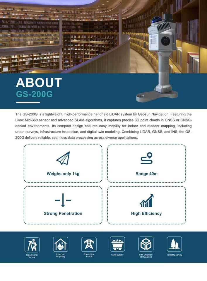 Scanner laser portable GEOSUN Gs-200G argent 5W, matériau ABS OEM, SLAM tridimensionnel haute précision, coordonnées, 1 an
